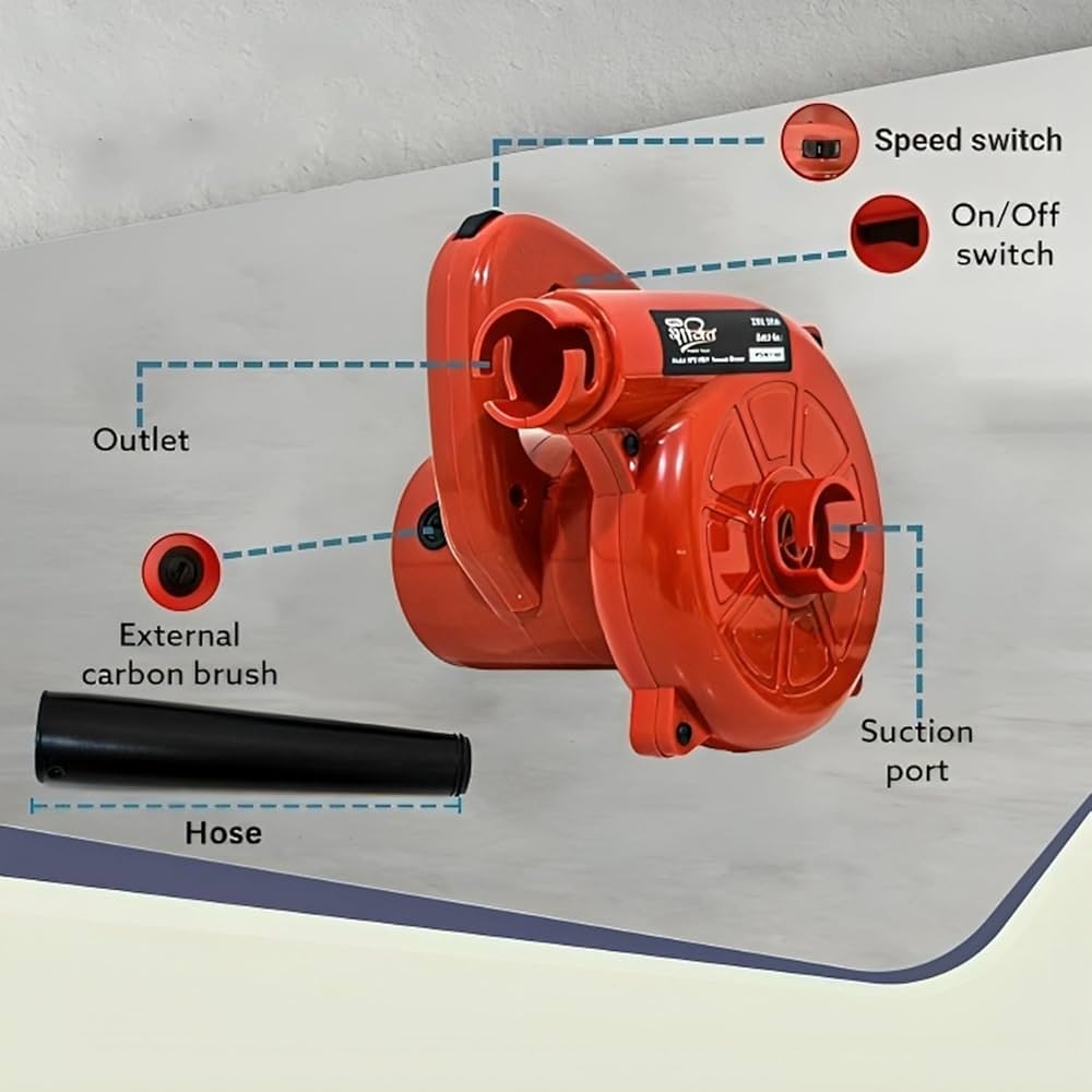 Portable Imported Pure Copper Winding Electric Air Blower and Vacuum Cleaner with Variable Speed Control and Double Function with Dust Bag In just Rs 4199 with 10 Days Money Back Guarantee for Customer Satisfaction.